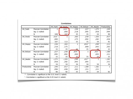 Visst, det ser ut att vara ett samband men för att säkerställa att detta samband inte uppkommit av en slump behöver vi ta hjälp av statistikprogrammet SPSS. Du som kan din vetenskapliga metod kan kanske utläsa av tabellen nedan så är det ett starkt samband mellan Fuels och min aktivitet på sociala medier. Vi kan också se att detta samband är signifikant på en 0.001-nivå. Detta innebär helt enkelt att vi kan utesluta att sambandet mellan min social media-aktivitet och mina Fuels uppkom av en slump. Diagrammet ovan gav som sagt en hint om att det fanns ett samband men för att vara helt säkra måste vi alltså ta nördvägen via SPSS.