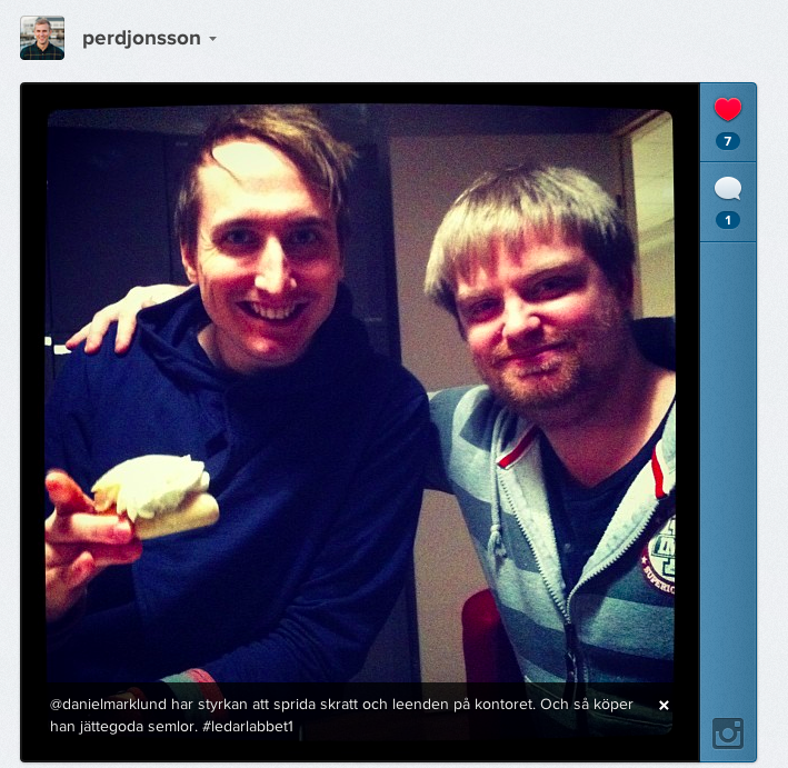 Per Jonsson från Omnicloud uppmärksammade till exempel sin kollega Daniels styrkor och valde att dela detta både i vår app men också på Instagram, tack Per!